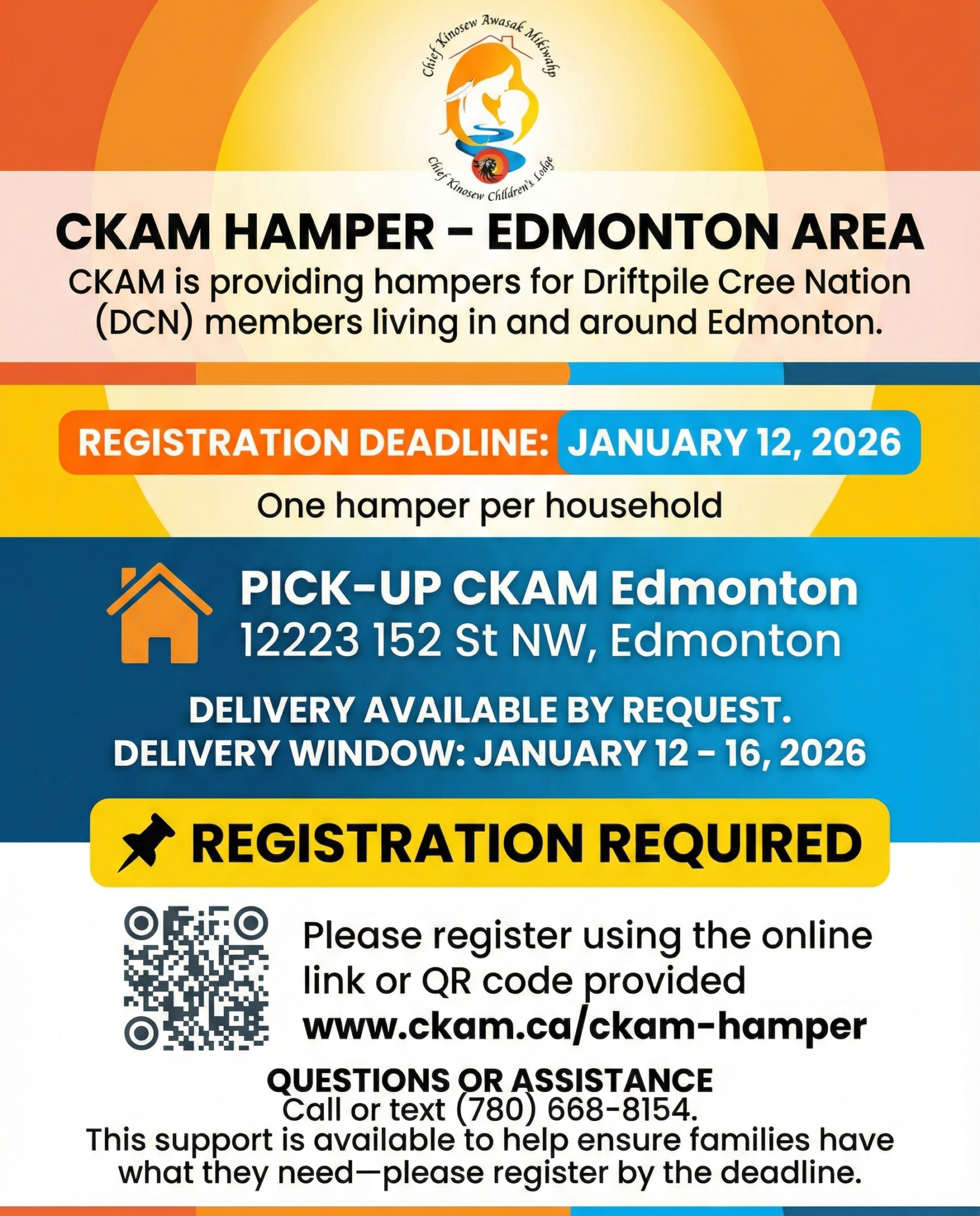 CKAM is providing hampers for Driftpile Cree Nation (DCN) members living in and around Edmonton.